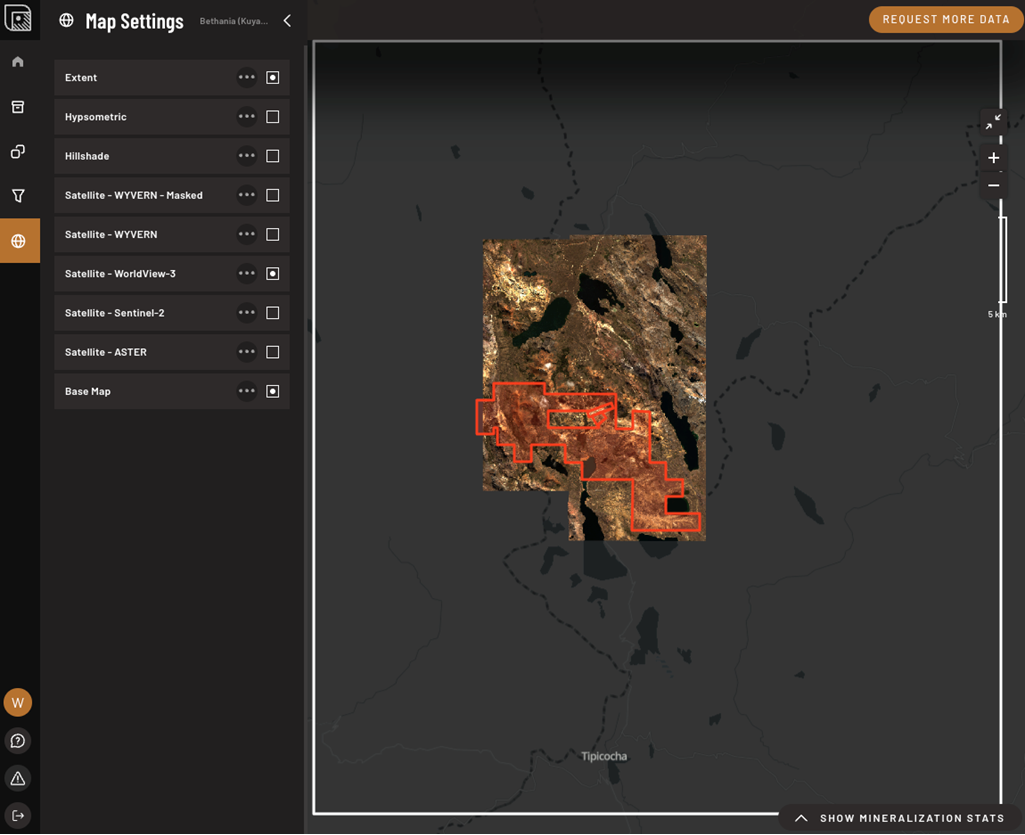 We combined multiple satellite datasets—ranging from high-resolution WorldView-3 to hyperspectral missions like PRISMA, EnMAP, and WYVERN, along with multispectral Sentinel-2 and ASTER. Each contributed unique strengths, whether in mineral identification, spectral resolution, or regional coverage.