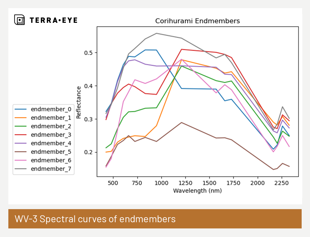Spectral similarity mapping, using Peru’s Corihuarmi mine as a reference analogue, to identify zones that resemble known productive systems.